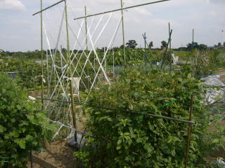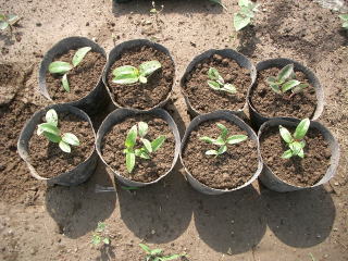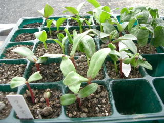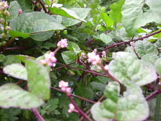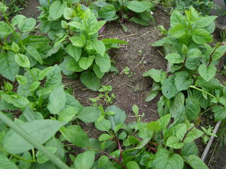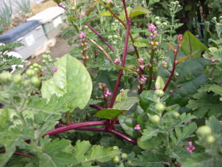 2007年9月29日 前年栽培の種が大量に発芽 取り除くが残った 葉の色と花がきれいなので料理の添え物に良