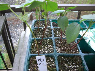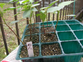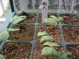 発芽、生育とも高温が必要で八重桜の咲く頃からがまきどきです。9cmポットに種まき用土をいれ、1cmの深さに種をまき、たっぷり水を与えます。夜間保温をすると発芽が早まります。直根性で移植をきらい、株間30cmで直まき栽培も出来ます。
