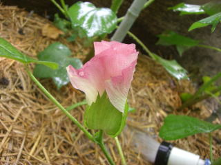 草丈1m以上の高性種で、フヨウに似た淡い黄色の大輪花が咲きます。花がしぼんでから約1ヶ月ほどで実が割れ白い綿がはじけます。生育旺盛で栽培しやすく、コンテナ植えでも栽培できます。