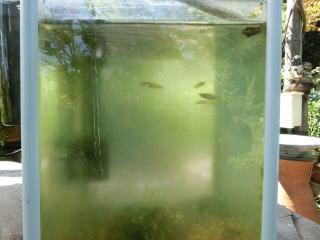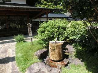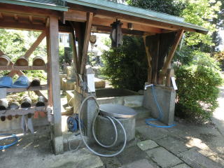 手水舎と右 八房の梅