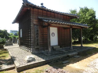 現在の本堂の一部は、越前時代のものと伝えられ、山門は氷見市正長頼の子松平綱国の寄進によるものである。本堂裏には氷見市正長頼と側室、その長女の墓がある。
