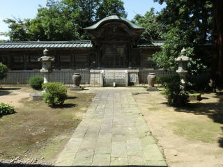 記録によると、本廟は、六年の歳月を費やして、明治二十一年に完成しています。注目すべきは、正面唐門と塀の装飾です。柱や妻飾りなどの細部にいたるまで、花鳥、動物などの精巧で美しい彫刻が施されています。これらは、柏崎の名匠、篠田宗吉が棟梁となって完成させたものです。
