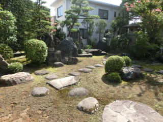 本堂庭 石塔があるが読めない