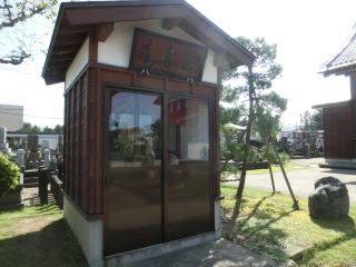 境内に松平中将の重臣・小栗美作公の墓がある。美作公は生前善導大師を篤く尊信されたという。この度、奇きし因縁によって現れ給うた御本尊を安置する由緒ある寺を旧に復さんと世話人、檀家信徒広く有縁の篤志に依り、ここに本堂再建が実現された。大正年間の焼失以来実に七十七年ぶりの快挙である。