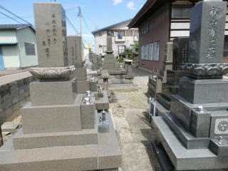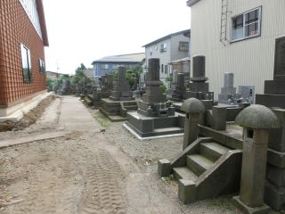 整然とした有縁墓・三百二基、無縁塔に合祀した二百二十九基、更に四十二年五月市の直営工事にて舊墓地(旧墓地)整地中に出た火・土葬の九百餘を無縁の碑に納めた。関連して山門の改修、経堂、石碑の移転、本堂の補強などを行い、庫裡の改築を以てすべてを完了