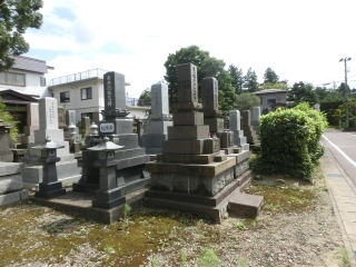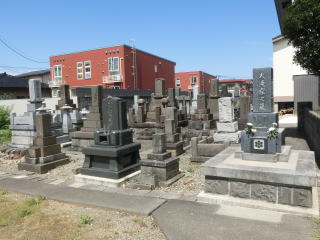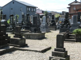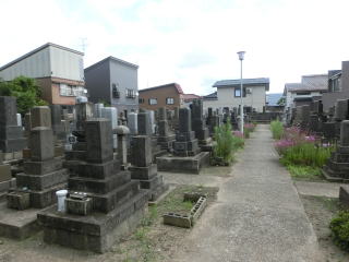 善念寺の墓地は三百有余年本堂の南・中島田圃に臨む処にあり。昭和三十九年春、高田市都市計画北城土地区画整理事業が起こり、基幹線街路によって墓地境内が分断されることになり、関係門信徒はいち早く期成同盟会を以て縣・市に要請する事十数回、調査研究を重ね昭和四十年夏、円満に了解の上境内東側の田畑を埋立て現墓地を造成し四十一年移転を完了した。
