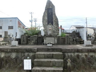 その間、市当局及び石材組合の絶大な厚意と共に同盟会役員、世話人の功績また甚大にて、実に寺檀の大事業であった。此処に墳墓関係者、檀信徒の浄財を以てこの記念碑を建立したものである。