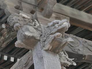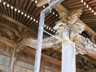 本堂 向拝柱木鼻の獅子頭