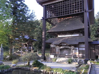 赤城山 西福寺は、天文三年(1534)に、芳室祖春大和尚によって開かれた曹洞宗のお寺です。寺院内にある開山堂は、安政四年(1857)に、二十三世蟠谷大龍大和尚によって建立され、建築様式は鎌倉時代禅宗仏殿構造で、屋根は茅葺き二重層、上層部は入母屋造り。唐破風の向拝を有しています。 開山堂の中には西福寺の御開山芳室祖春大和尚と、曹洞宗の御開祖道元禅師がおまつりされています。また、堂内の天井、欄間、壁面などには、幕末の巨匠石川雲蝶作の彫刻 絵画がふんだんに施され、それらの作品は新潟県重要文化財に指定されています。