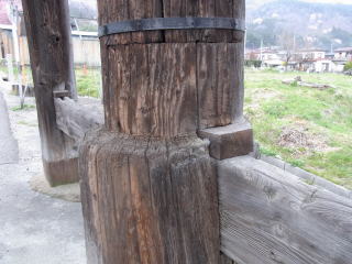 昭和56年改築の際安全のために基部材に鉄材が使用されている