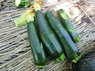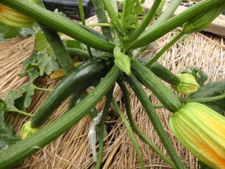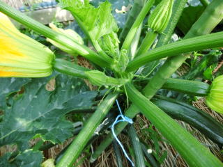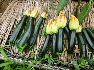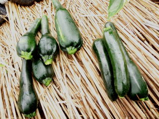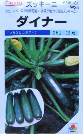 つるが伸びないので場所をとらず、強健で作りやすいので家庭菜園向きです。果実は黒緑色の円筒形、連続して収穫できます。天ぷら、煮物、油炒めのほか、欧風料理ラタトゥーユ等に利用できます。