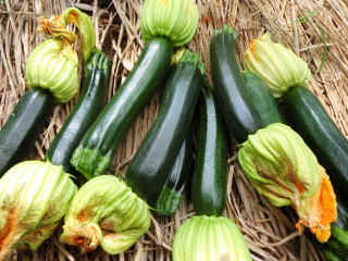 濃緑の果皮で、開花後5日程度の若い果実を収穫するズッキーニ。つるの伸びない草姿で、少ない面積で栽培可能。安定した草勢と多い雌花の着生で収量が上がる。