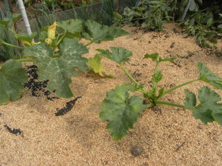 育苗はポットに2粒まき本葉1枚のころに、直播は3〜5粒まき、本葉3枚までに1株に間引きします。120pのうねに株間70pで、マルチをして植え付けます。大き目のプランターでは45pに1株植えにします。1u当たり苦土石灰100g、完熟堆肥3sと化成肥料150gを施してよく耕します。花が咲くころから追肥します。防風とウィルス・うどんこ病対策に務めます。